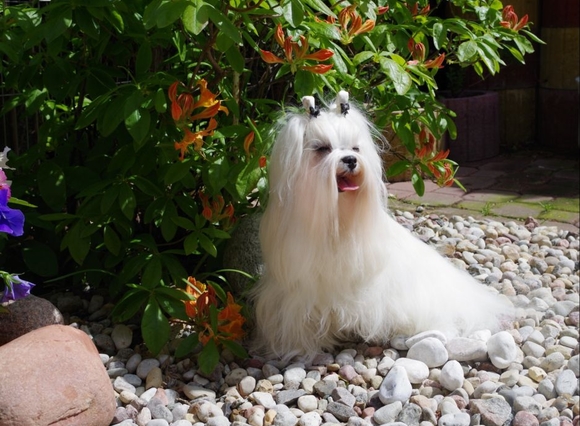 Dobra górna linia , chodzi dość wąsko , suczka nie duża .