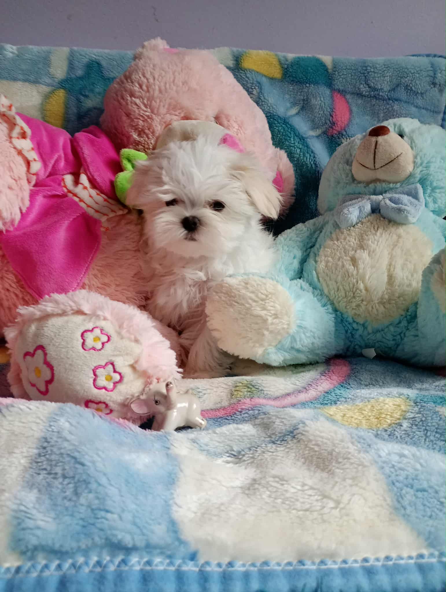 suczka i 3 pieski rozglądają się za nowymi domkami